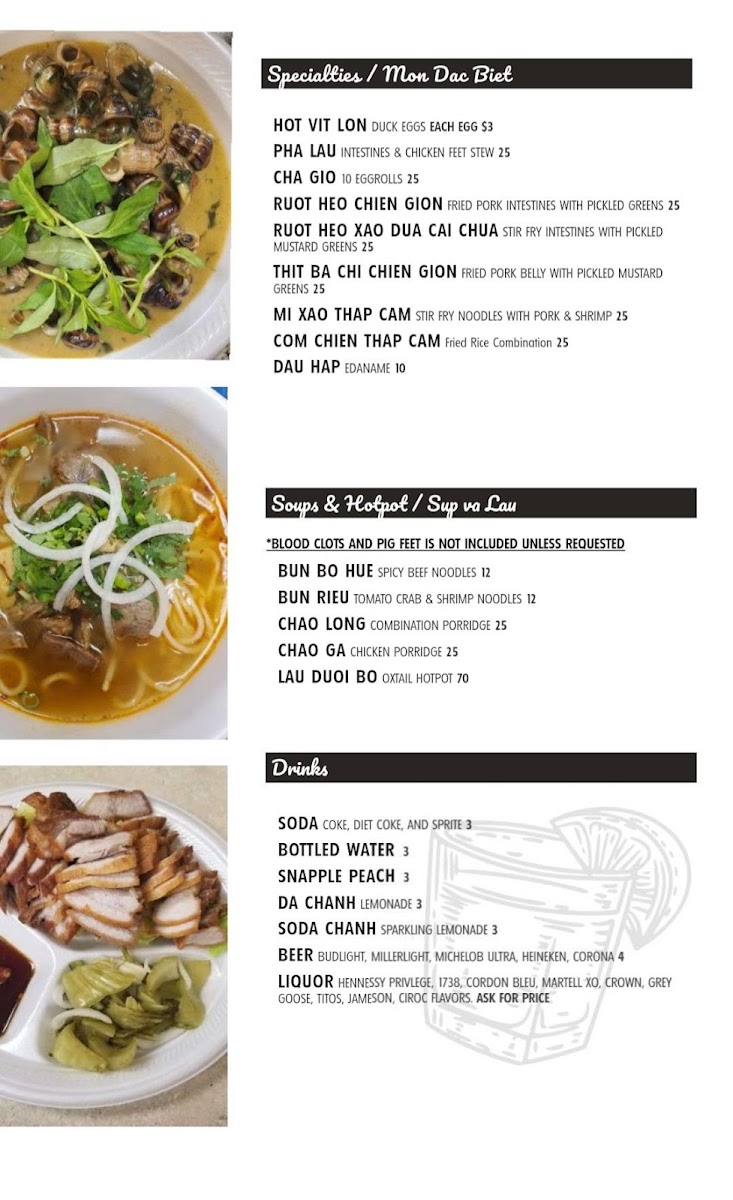 The menu at Cafe Di Vang offers a straightforward and inviting selection of Vietnamese dishes alongside casual bar bites, making it an easy choice for both relaxed meals and late-night gatherings. You’ll find a blend of comforting soups like Chao Long and Tomato Crab Soup, lively small plates such as Fried Frog Legs and Calamari, and hearty mains including Korean Short Ribs and Bo Luc Lac (Shaking Beef). These dishes pair well with the easygoing, communal atmosphere where friends can enjoy good food together.