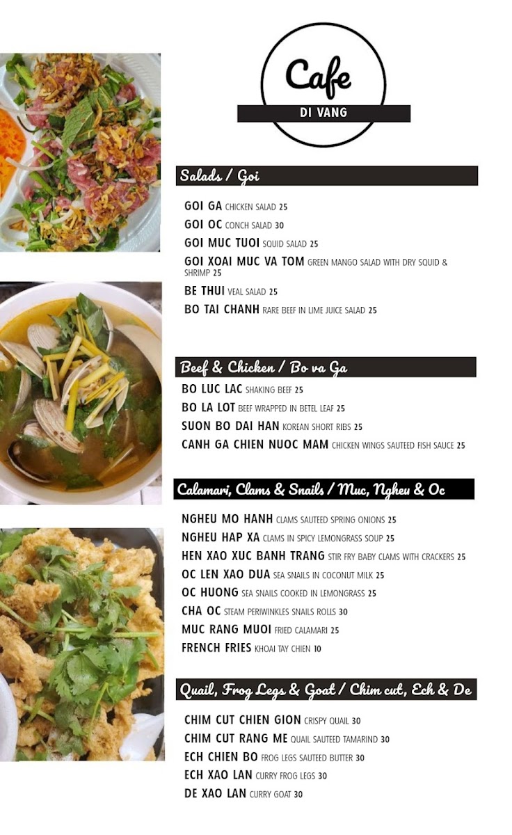 Whether you’re stopping by for a comforting bowl of soup or gathering for snacks and drinks, the menu at Cafe Di Vang reflects a balance of familiar Vietnamese tastes with a relaxed atmosphere that feels both welcoming and unpretentious.